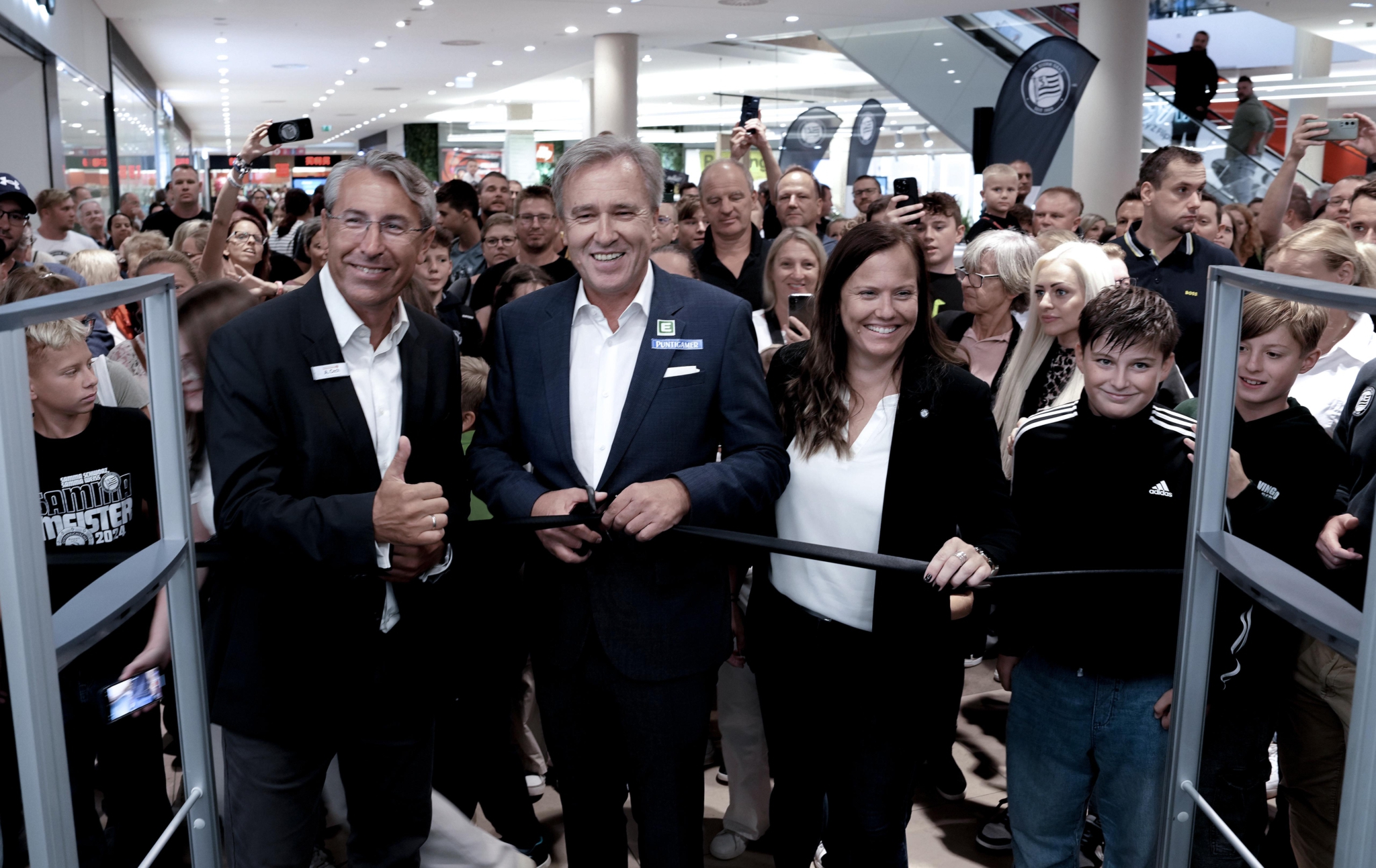 Am heutigen Montag wurde der große und hochmoderne SturmShop an einem neuen Standort in der ShoppingCity Seiersberg eröffnet – Präsident Christian Jauk zerschnitt feierlich das Band.