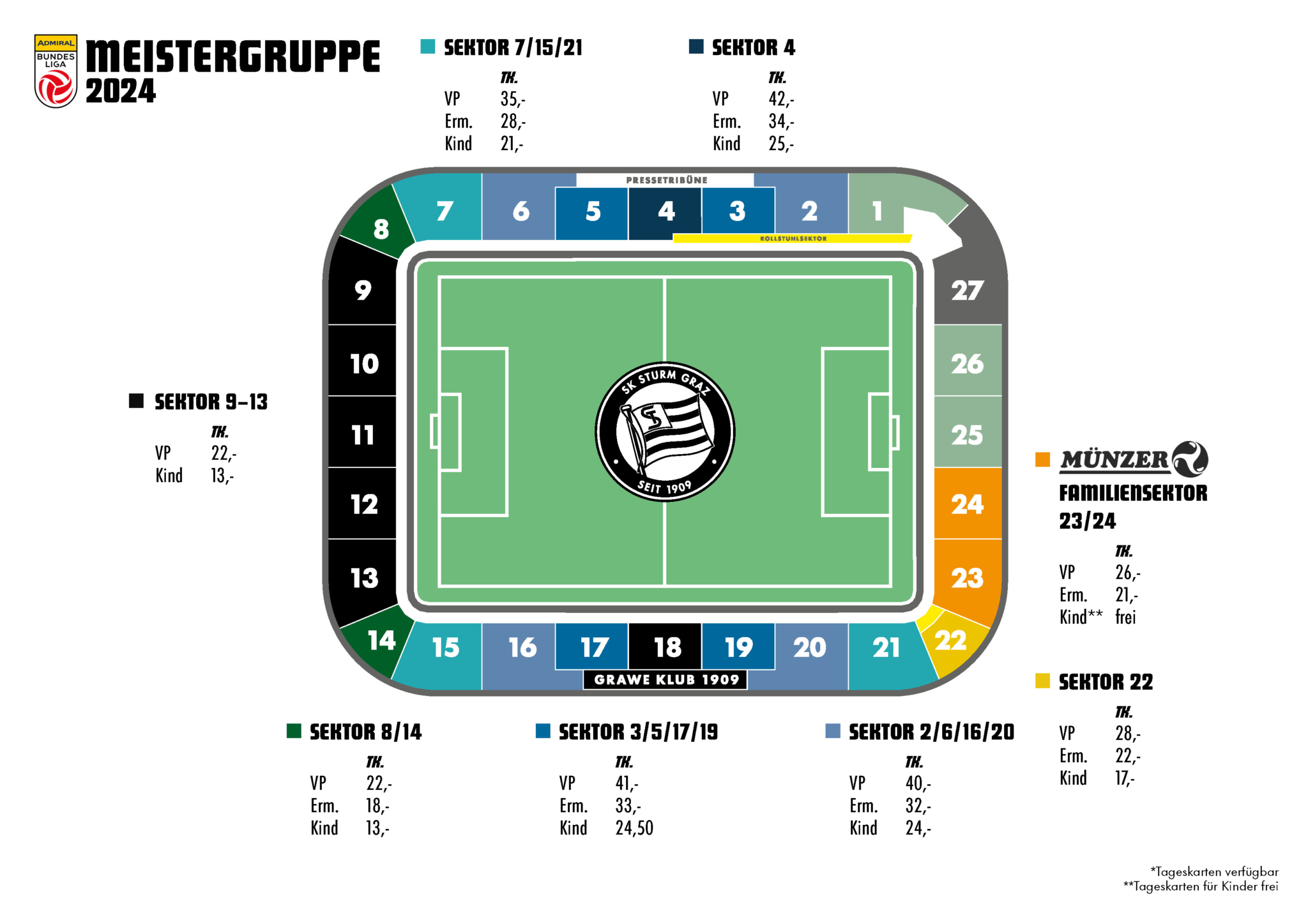 - Tickets für Menschen mit Behinderung auf Anfrage beim Heimverein oder per Mail an inklusion@sksturm.at.